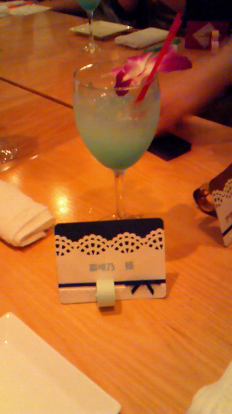 薄い水色のカクテルですvvそれに赤い花がのってる!