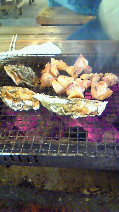 牡蠣~vv生は食べられないけど焼いたのとか大好きvv今日は地鶏も売ってあったので地鶏も追加!